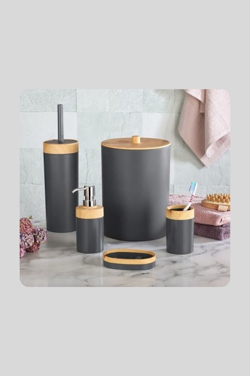 Ürün İçeriği: Çöp Kovası, klozet Fırçası, sıvı sabunluk, katı sabunluk, diş fırçalık.