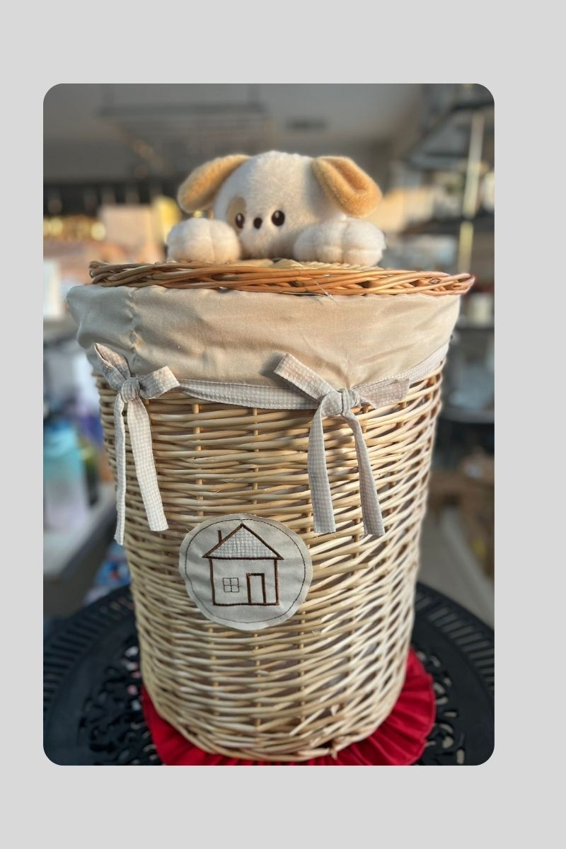 Hasır kapaklı kirli çamaşırlık.